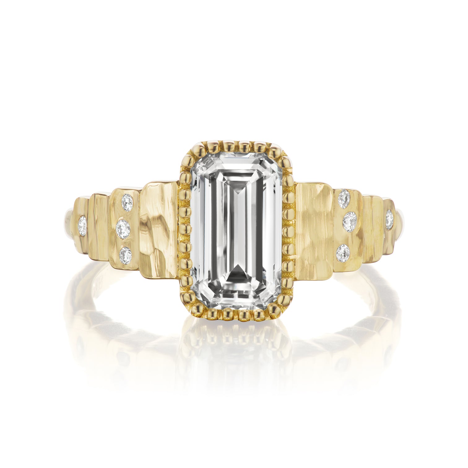The queen of the zodiac, Leo is synonymous with “star.” Ruled by the sun, they love to have a light shined on them, but they shine it back generously with everyone in their orbit. While Leos have a reputation for being attention-seeking, it’s not in a selfish way. People can’t help but watch them, as they tend to be highly charismatic and talented performers at the brunch table or on stage. Their sunny personalities make them a joy to be around. Our crown band and sunny citrine studs had to be in Leo’s assortment, as did these fire-toned statement earrings bold emerald cut diamond ring.