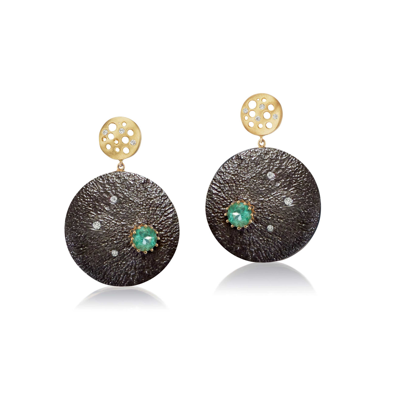 Constellation Coin Huggie Drop Earrings with Mabé Sea of Cortez Cultered Pearls |