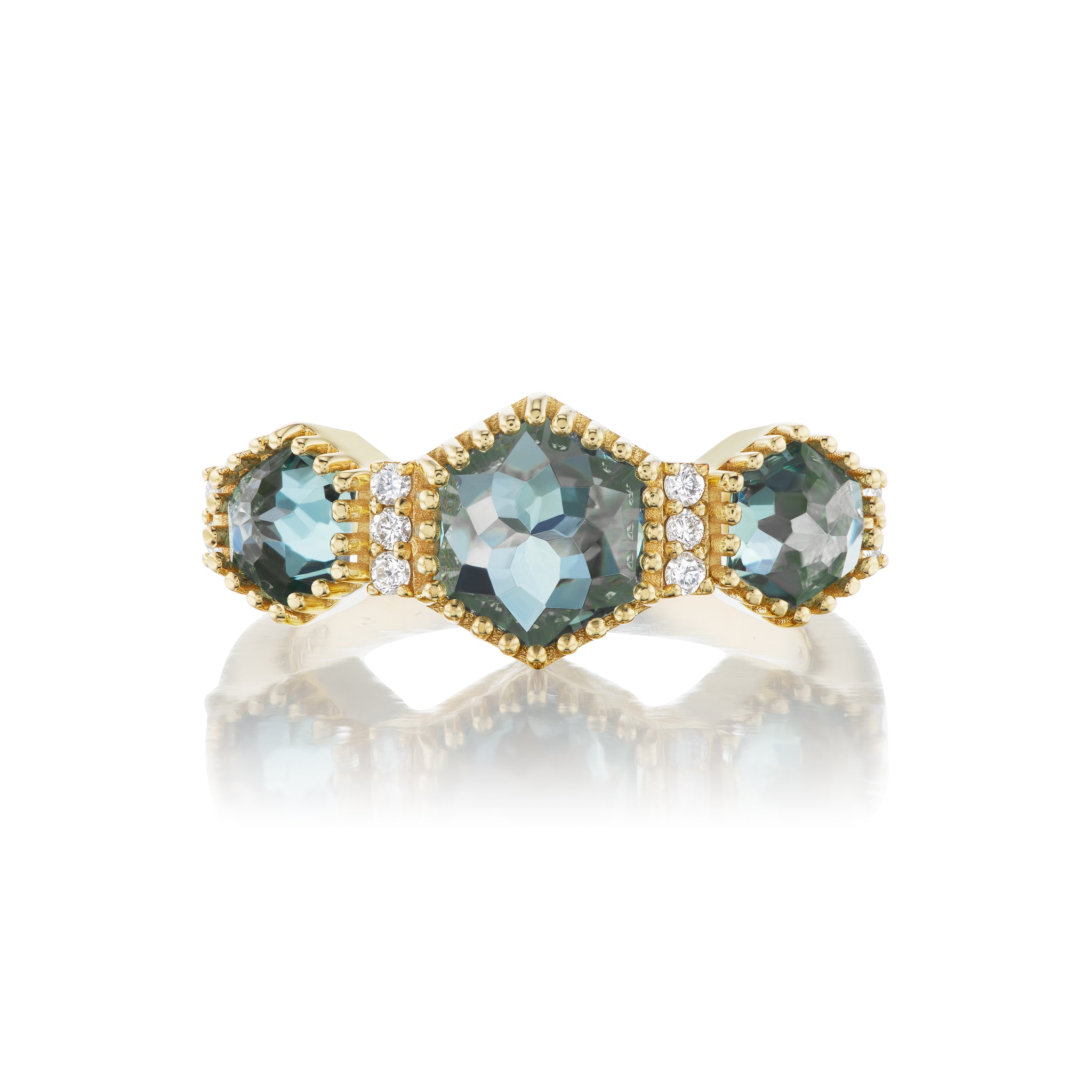 Three Rose Cut Hexes Montana Sapphire Ring